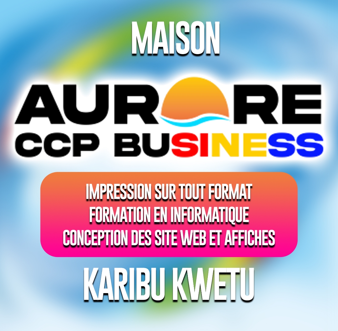 Installée à l’Hôtel des Postes à Bukavu, Aurore Business est une entreprise de référence spécialisée dans l’impression tous formats, la formation en informatique, la création de sites web, ainsi que le montage vidéo pour mariages et reportages.