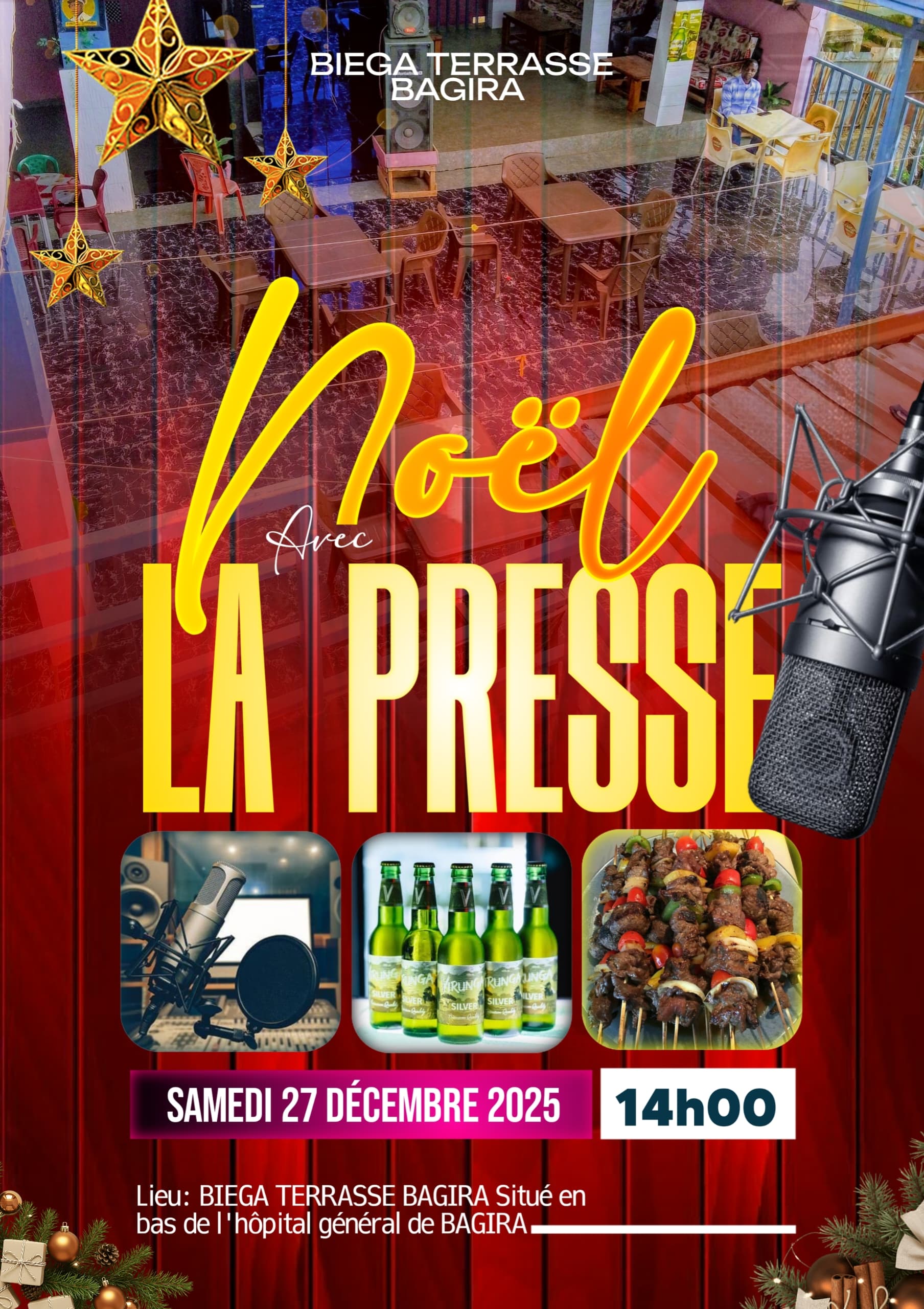 Au programme ,ambiance musicale entraînante, repas et boissons variés, le tout dans un cadre sécurisé. Les organisateurs appellent les professionnels des médias radio, presse écrite et audiovisuelle à venir nombreux pour clore l’année dans la joie. Cette initiative confirme la volonté de Biega Terrasse de devenir un lieu de choix pour les événements marquants à Bukavu.