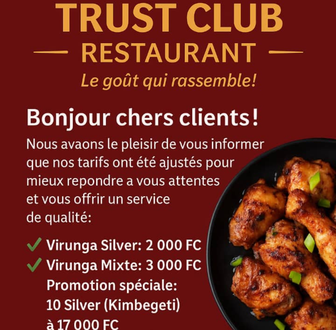 Bienvenue chez Trust Club, situé sur la Route de la Place de l’Indépendance, en face de l’ancien parking Kavumu, dans le bâtiment Zénith.