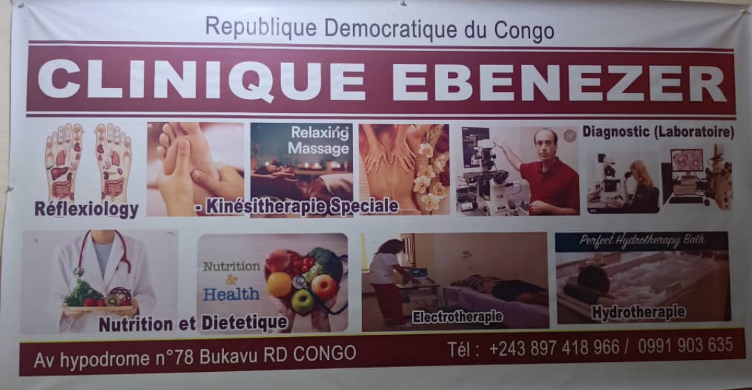 Situé dans la ville de Bukavu, chef-lieu de la province du Sud Kivu sur avenue Hypodrome au quartier Ndendere, en face du mess des honorables, la clinique Ebenezer se démarque dans le traitement des plusieurs maladies, grâce à ses matériels modernes et produits efficaces.