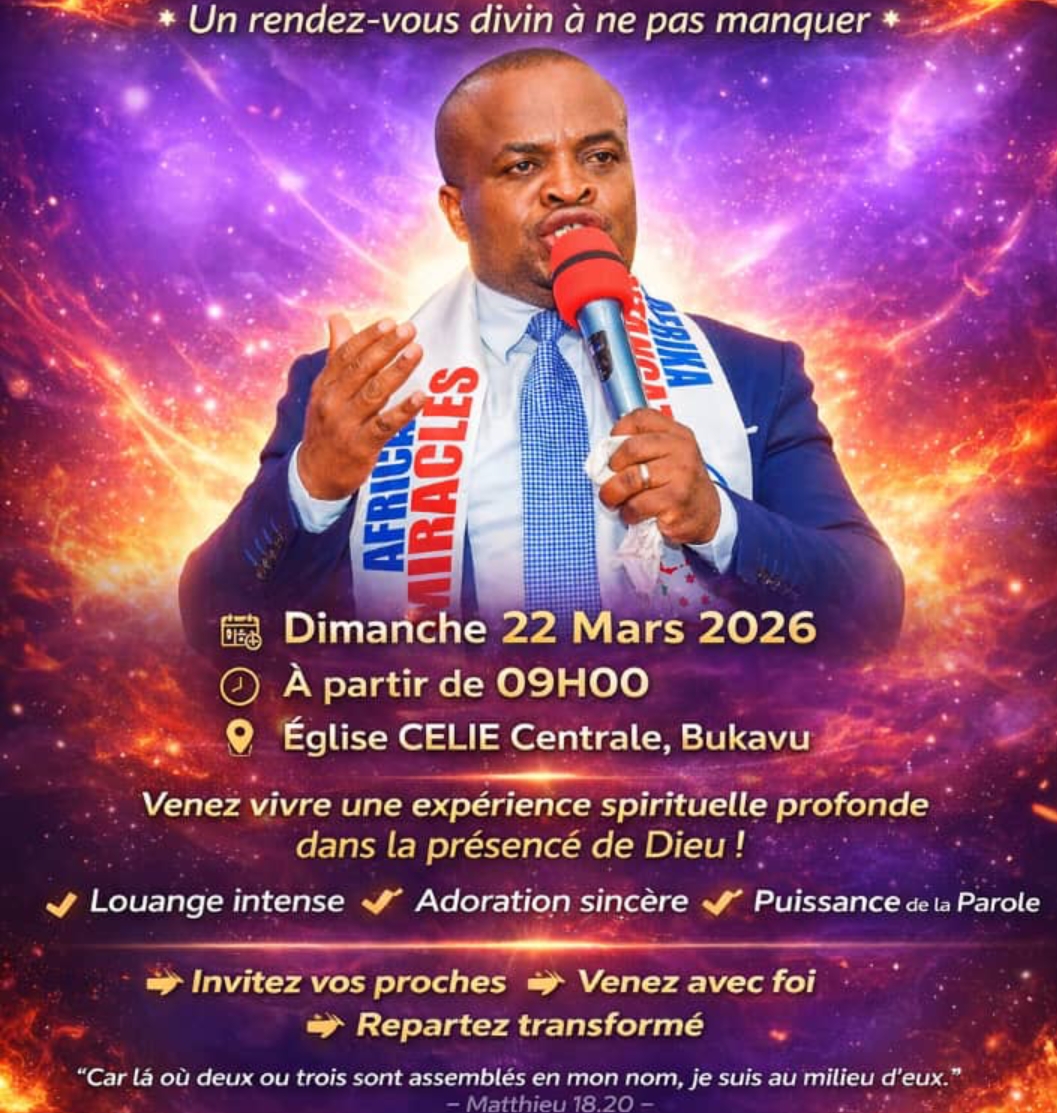 La Communauté Évangélique de la Louange et d’Intercession Ebenezer (CELIE) convie les fidèles à des temps intenses de communion avec Dieu dans son nouveau siège situé sur la route Camp Saïo, à proximité de la cabine SNEL, dans la commune d’Ibanda. Portée par la vision de l’apôtre Barnabas Muzusangabo, cette œuvre spirituelle se veut un cadre d’édification, d’enseignement et d’intercession, où chacun peut se rapprocher de Dieu, être fortifié dans sa foi et expérimenter la puissance de la prière dans un contexte de louange et d’adoration.