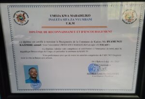 L’Association Sans But Lucratif UMOJA KWA MABADILIKO (UKM), une asbl affiliée au consortium des mouvements citoyens et groupes de pression Bloc Uni pour le Développement du Congo (BUDC), a décerné ce jeudi un Diplôme de reconnaissance et d’encouragement à Maître Byamungo Kazimiri Samuel, Bourgmestre de la commune de Kadutu, pour saluer son engagement exceptionnel dans la gestion et le développement local.