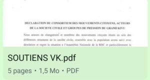 Dans ce document, le Consortium des mouvements citoyens, acteurs de la société civile et groupes de pression du grand kivu fait allusion aux pétitions initiées par certains députés membres de l’union sacrée de la nation contre le président de la chambre basse du parlement Vital KAMERHE et quelques membres de son bureau, des pétitions qui ont été déposées depuis lundi dernier au secrétariat général de cette chambre.